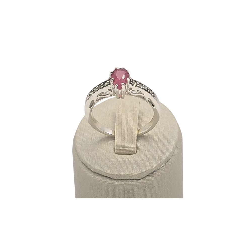 Adornando cada lateral do anel, quatro pequenas marcassitas complementam a beleza do rubi. As marcassitas são dispostas simetricamente, adicionando um toque de brilho e sofisticação à peça.