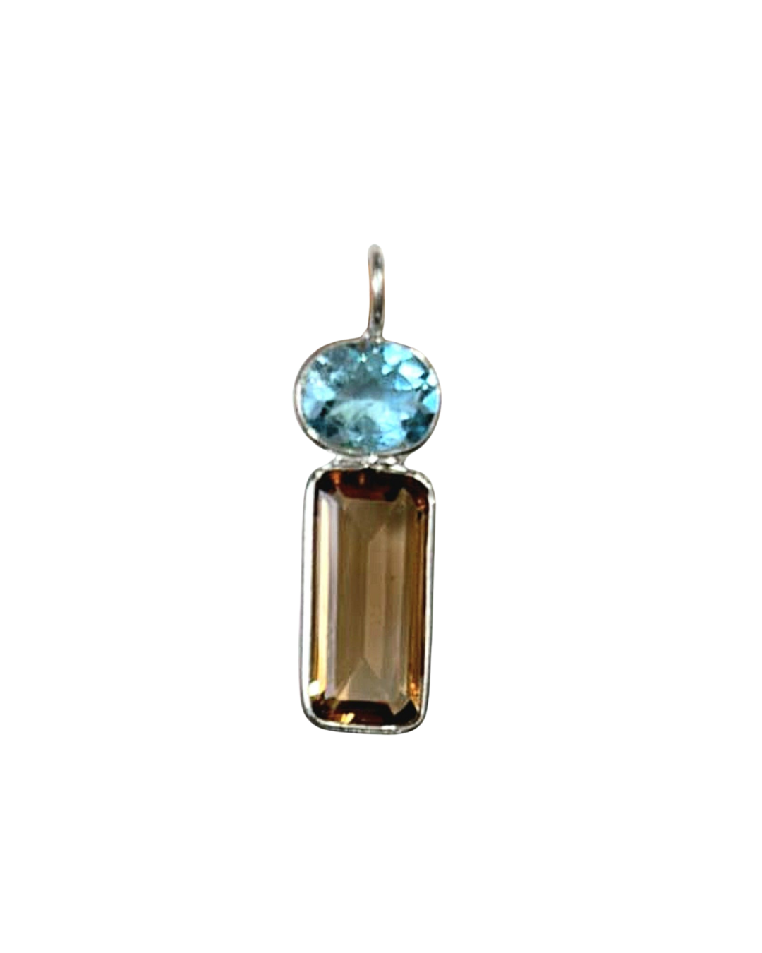 Elegante pingente feito em prata 925, com citrino e topázio lapidados, proporcionando brilho e sofisticação. O citrino atrai prosperidade, enquanto o topázio traz equilíbrio e clareza.